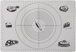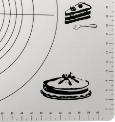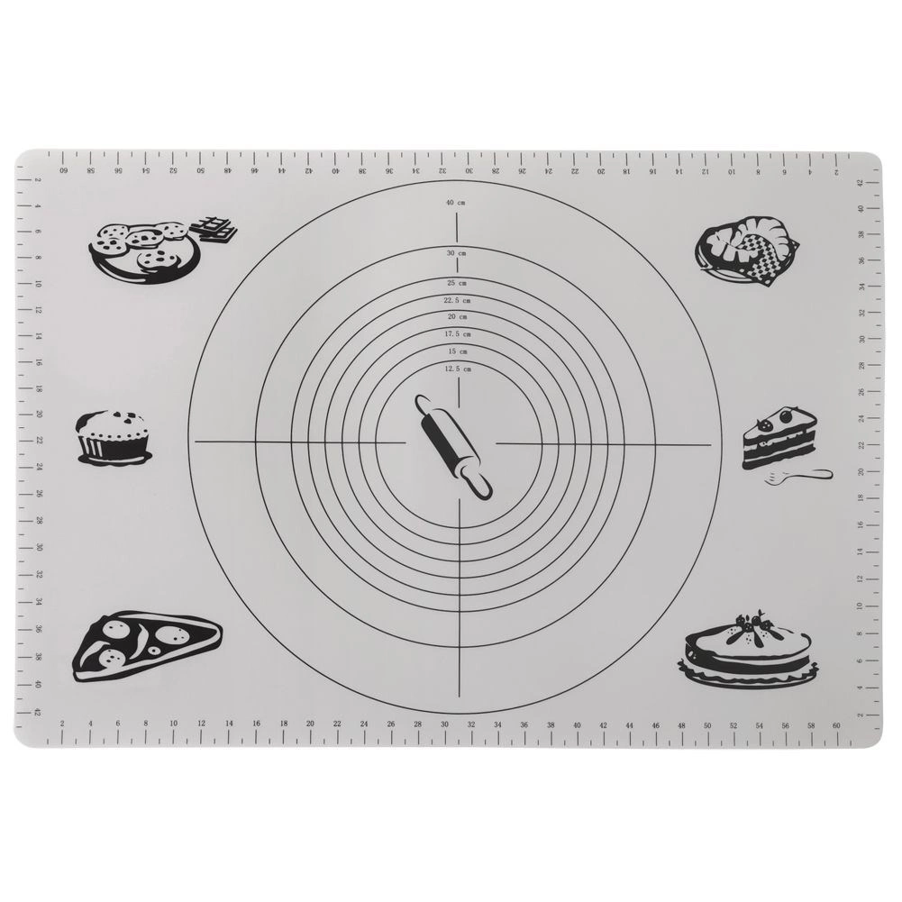 Praktisk køkkenmåtte i størrelsen 65 × 45 cm med tydelige måleskalaer i centimeter og cirkelskabeloner til præcis formning af dej. Den er let, holdbar, non-stick og nem at vedligeholde. Perfekt til at tilberede pizza, bagværk og pasta, beskytter bordpladen og gør udrulning nem uden unødvendig brug af ekstra mel.