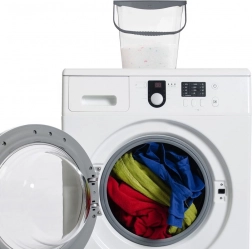 Et sikkert, lukbart låg beskytter vaskemidlerne mod fugt og spild og holder orden i vaskerummet.