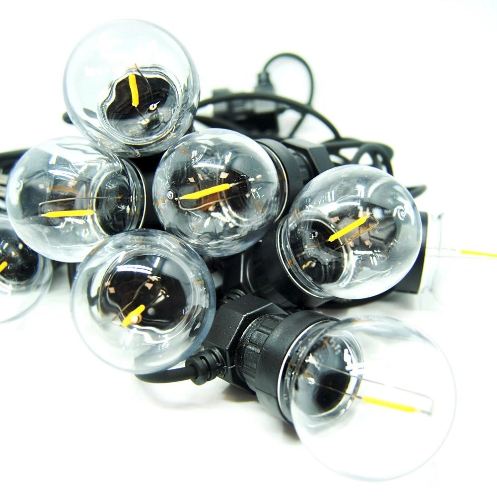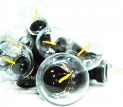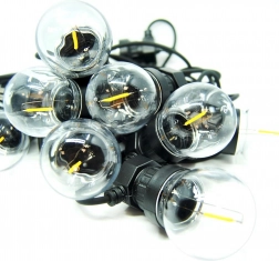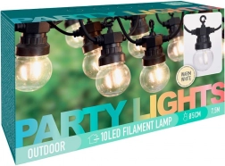 Stilfuld lyskæde på 7,5 m med 10 LED-pærer med en diameter på 5 cm, som skaber varm, stemningsfuld belysning på terrasse, altan og i haven. Tilbyder alsidig brug inde og ude, nem installation takket være kroge på hver fatning og energibesparende drift. Netdrevet, IP44 til udendørs brug.