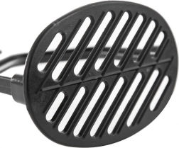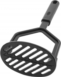 Det ergonomiske håndtag ligger godt i hånden og muliggør behagelig og jævn presning. Den brede arbejdsflade med slidser sikrer glat kartoffelmos, men klarer også anden kogt grøntsag og frugt. Efter brug kan den nemt vaskes i opvaskemaskinen og hænges på en skinne takket være hullet i håndtaget.