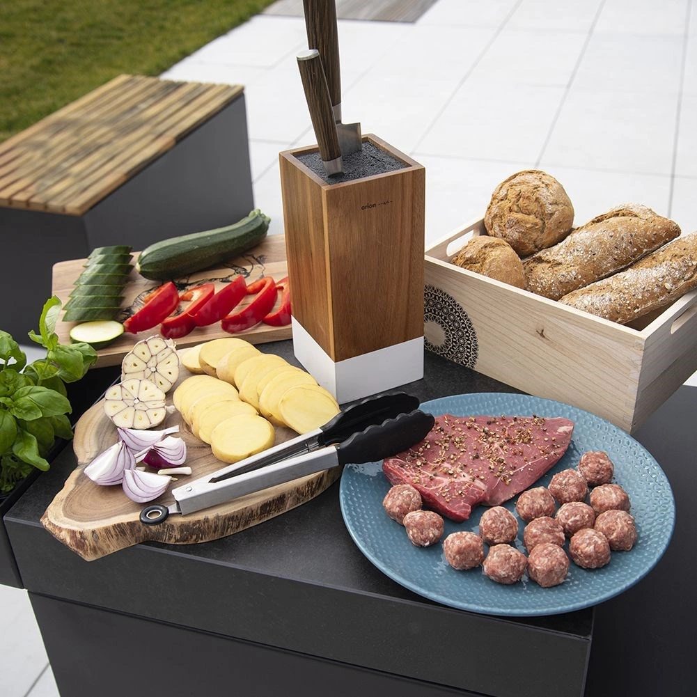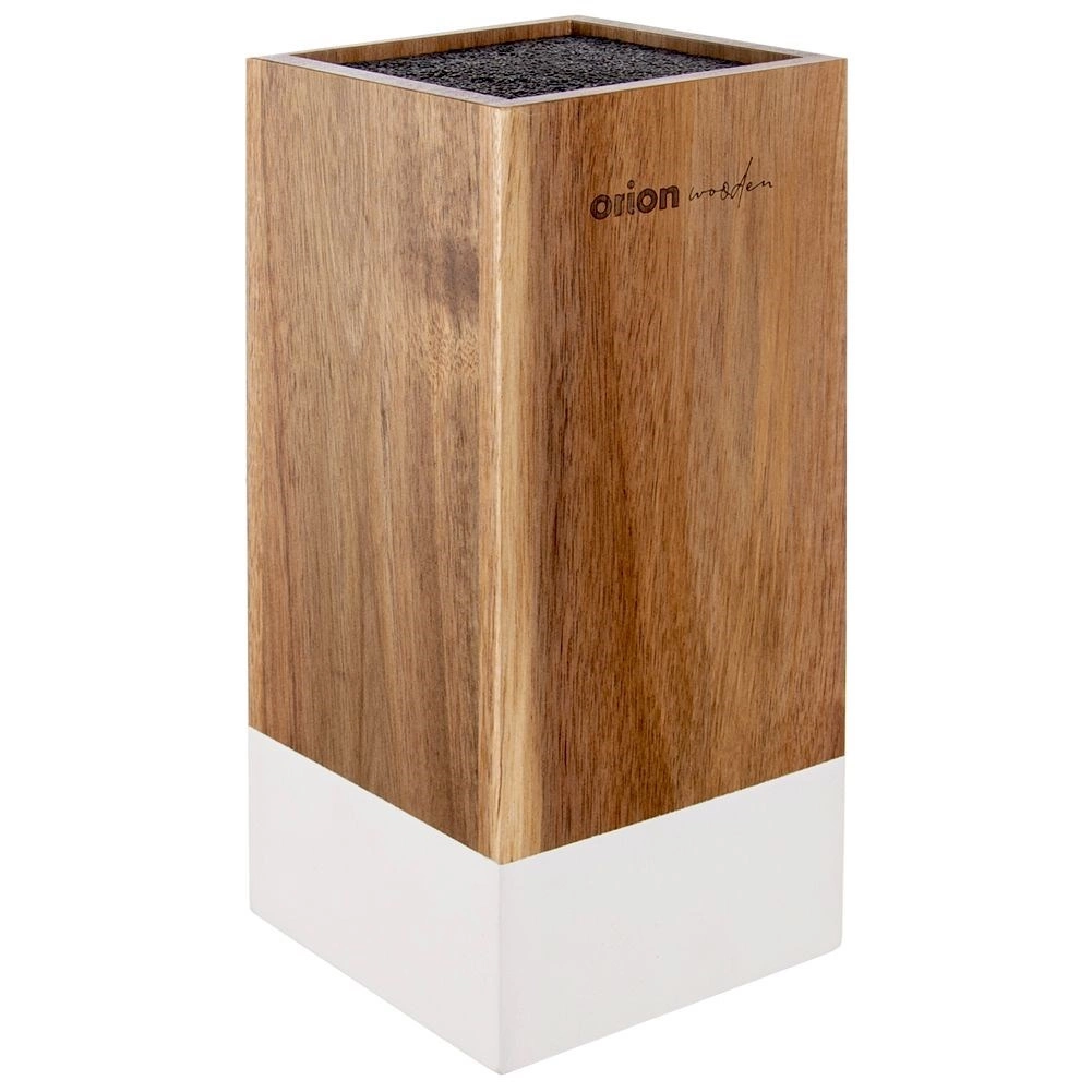 Den praktiske og stilfulde Whiteline knivblok er fremstillet af kvalitetsakacietræ og kompletteret med en hvid dekorstribe. Takket være den tætte, udtagelige plastfiberindsats opbevarer du sikkert stål-, keramik- og kombinationsknive uden risiko for sløvning. Den kompakte form sparer plads på bordpladen og holder dit køkkenudstyr lige ved hånden.