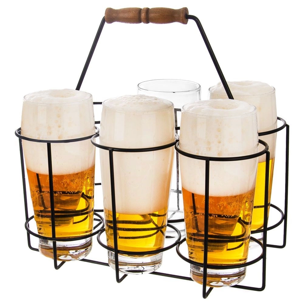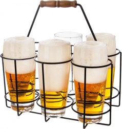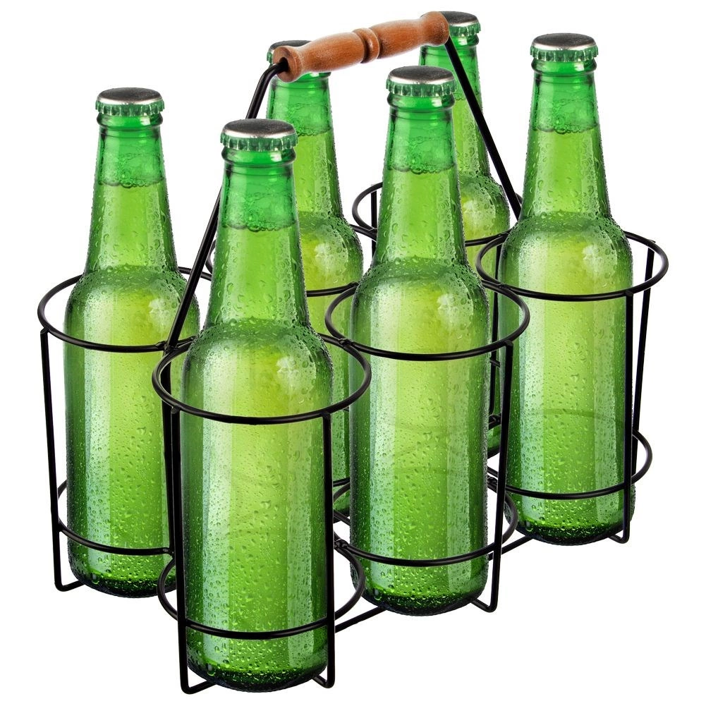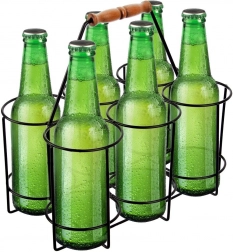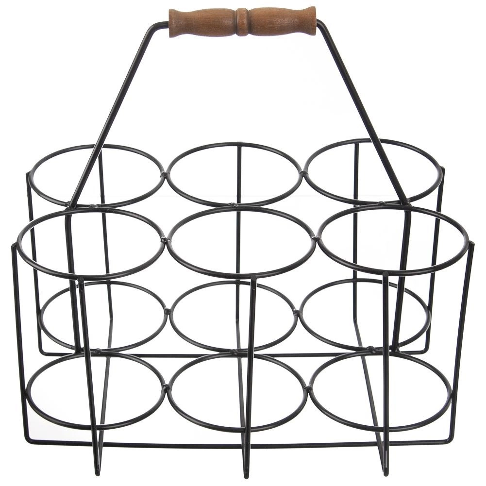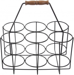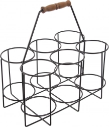 En robust metalkurv til transport af flasker eller glas, som giver sikker organisering og nem håndtering. Seks separate, ringformede holdere holder beholderne sikkert på plads, mens træhåndtaget sikrer et komfortabelt greb. En fremragende løsning til hjemmet, haven, terrassen og servering af drikkevarer ved grill.
