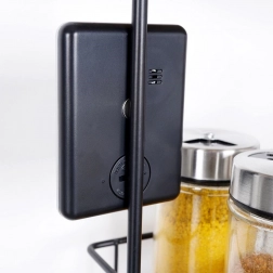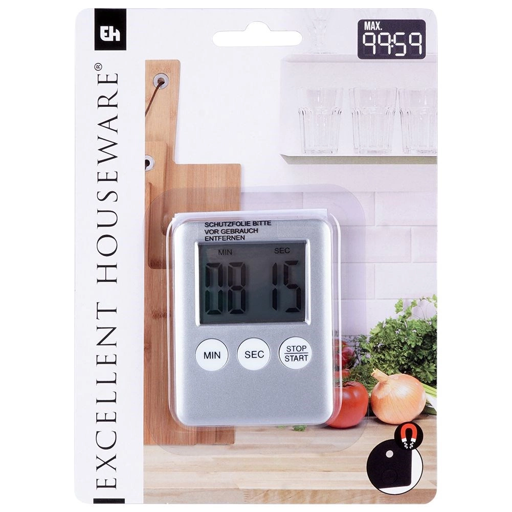 Det robuste plastikdesign i elegant sølv med sort bagside er let og holdbart. Den bageste magnet gør det muligt at fastgøre på køleskab, ovn eller anden metaloverflade, eller du kan lade den stå frit på køkkenbordet.