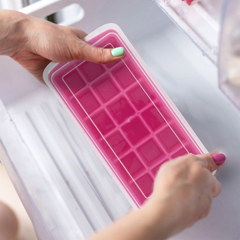 Den elastiske bund gør det let at frigive op til 18 terninger uden besvær. Låget forhindrer spild under transport til fryseren.