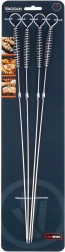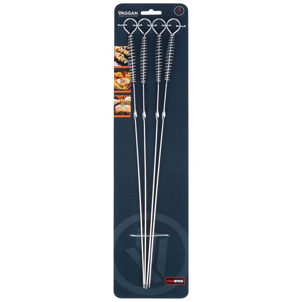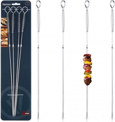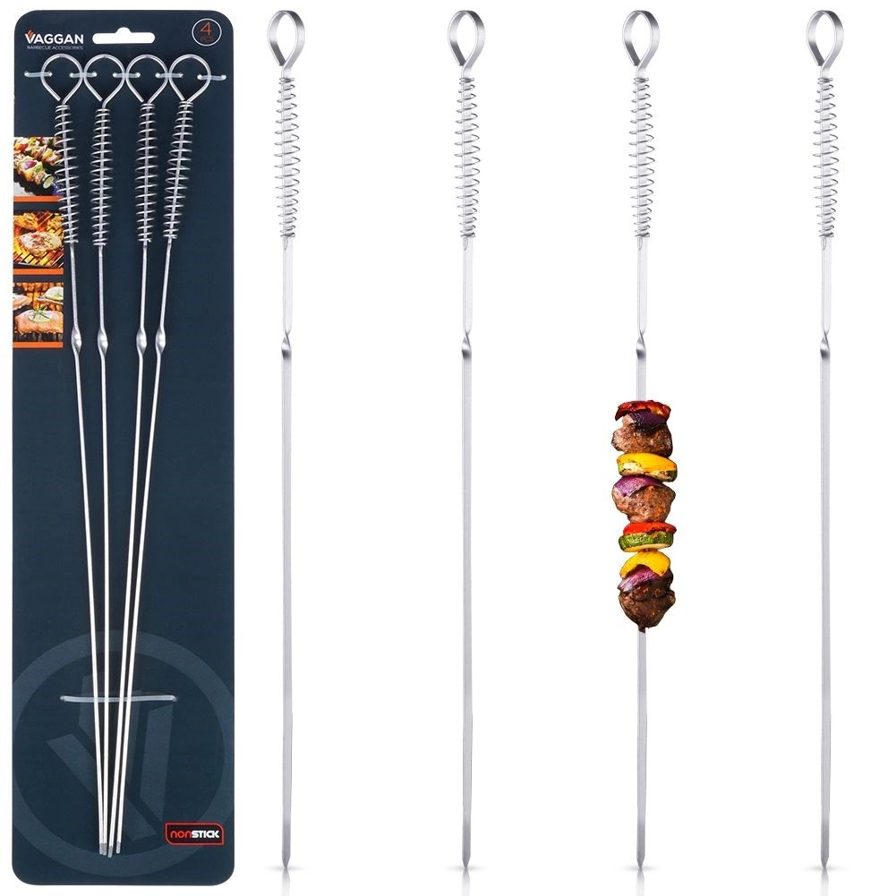Med dette sæt spyd tilbereder du perfekt gennemstegte sjasjlik, kebab og grøntsagsspyd. De er lavet af holdbart rustfrit stål, som tåler høje temperaturer og ikke ruster, så de kan bruges i mange sæsoner. Øjet i enden gør det nemt at håndtere, hænge op og dreje over grillen.