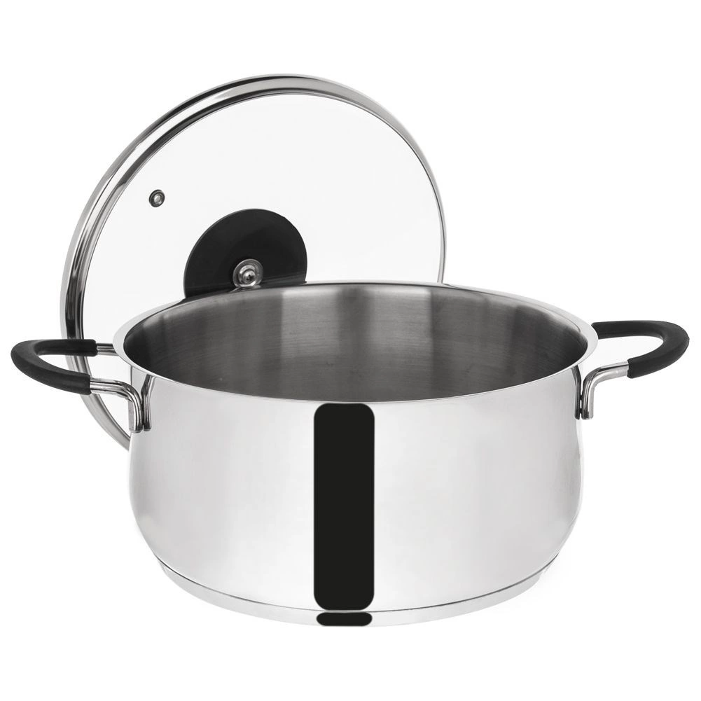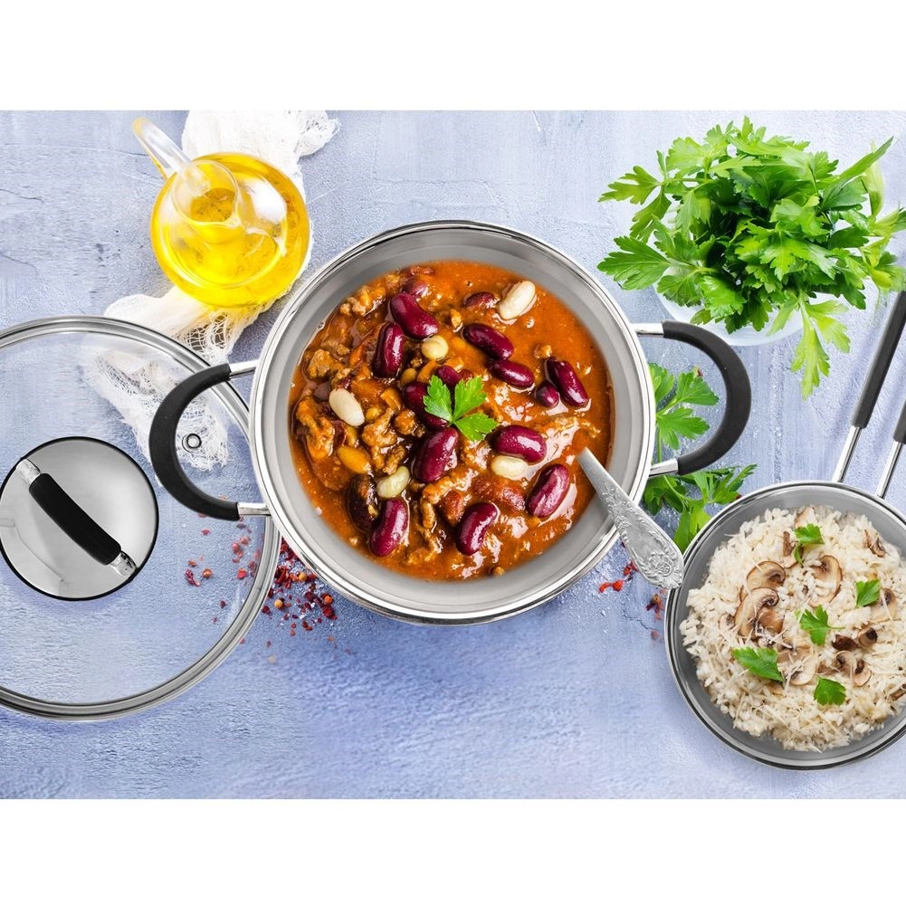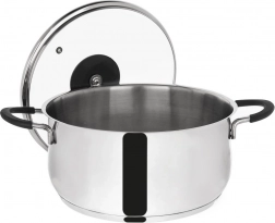 Den flerskikts akutermiske bund akkumulerer og fordeler varme fremragende, så du laver mad mere effektivt og med lavere energiforbrug. Gryden er kompatibel med gas-, elektriske, glaskeramiske, halogen- og induktionskogeplader og kan takket være varmebestandighed op til 200 °C også bruges i ovn (uden låg). Glaslåget med rustfri kant og udluftningshul gør det muligt at kontrollere madlavningen uden unødigt varmetab.