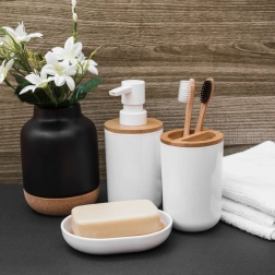 Fremstillet af kvalitetsmateriale, som er let men robust, kombineret med naturlig bambus. Sæbeskålen er praktisk til daglig brug og passer til forskellige indretningsstile.
