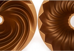 Takket være det dybe, formede relief får dine ringkager et attraktivt udseende med markante riller. Formen er velegnet til gas- og elovne og tåler temperaturer op til 200 °C. For lang levetid anbefales håndvask og let smøring før bagning.