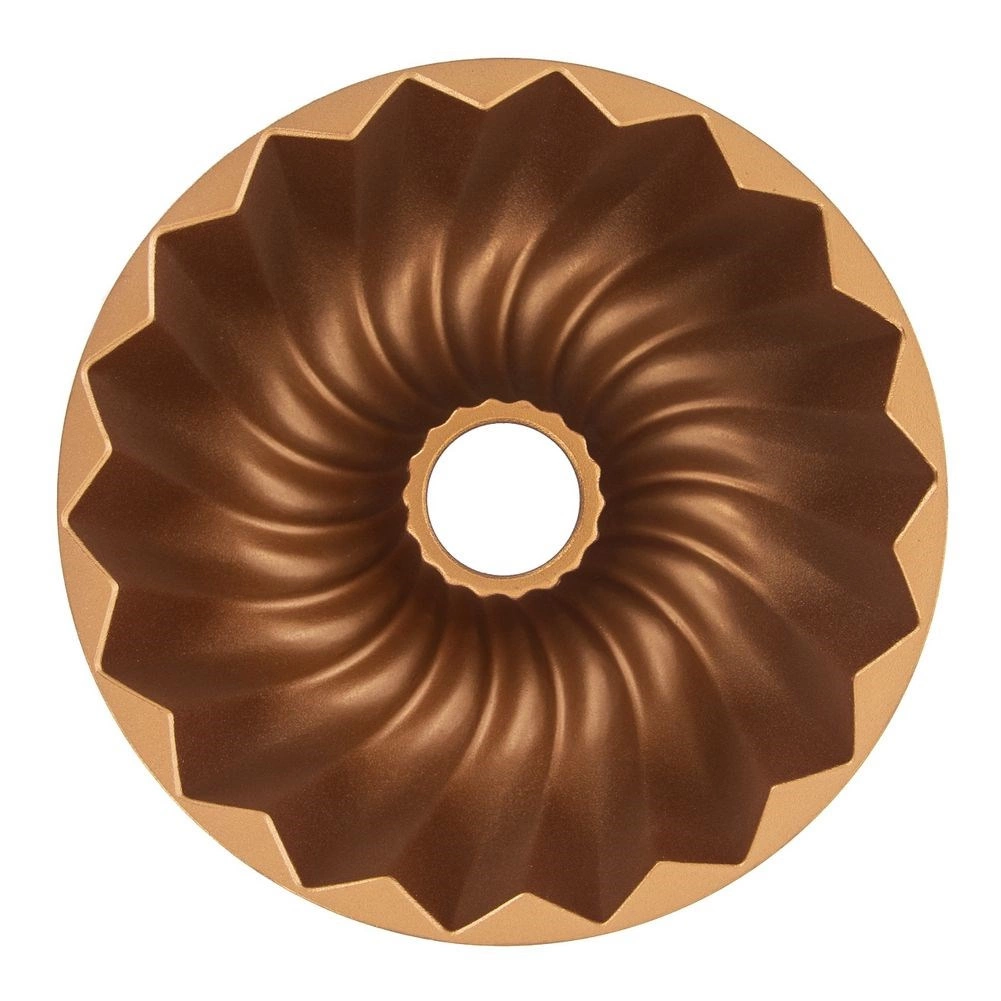 Denne robuste rundform med skorsten er ideel til både hverdagsbagning og festlige desserter. Fremstillet af kvalitetsaluminium med non-stick PFLUON indvendigt, sikrer den jævn varmefordeling og problemfri udtagning af den bagte kage. Det kobberfarvede design giver dit køkken et unikt præg.