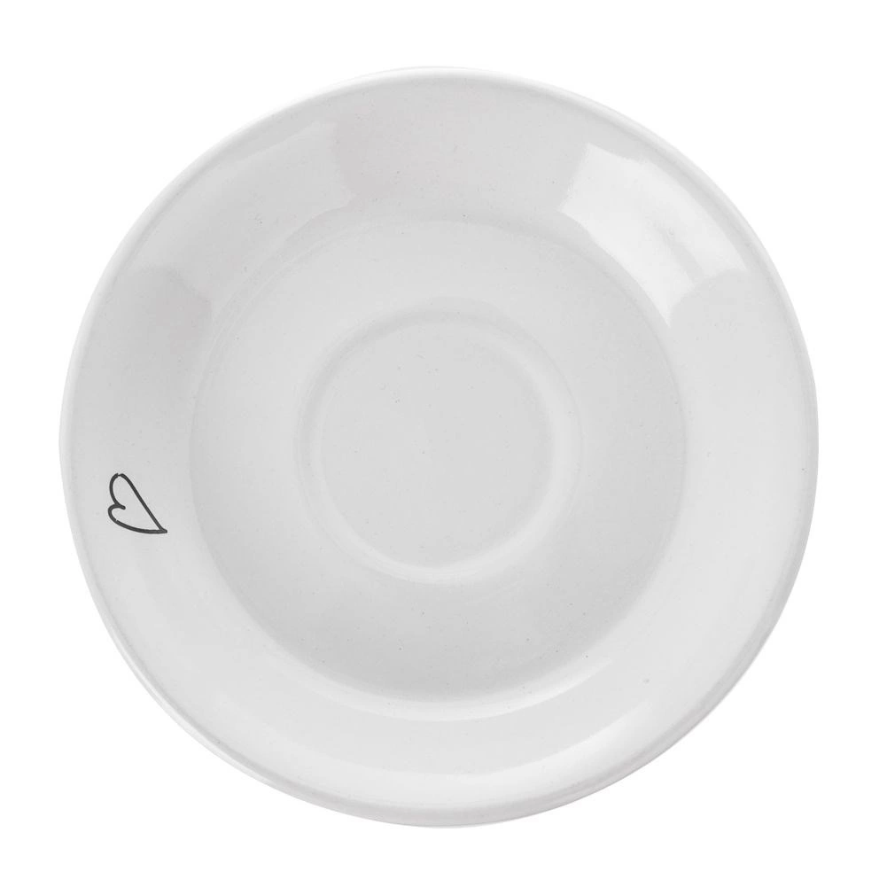 Hvid keramik med en delikat sort lineart-tegning af en engel og hjerter giver dit bord et elegant og originalt udtryk.