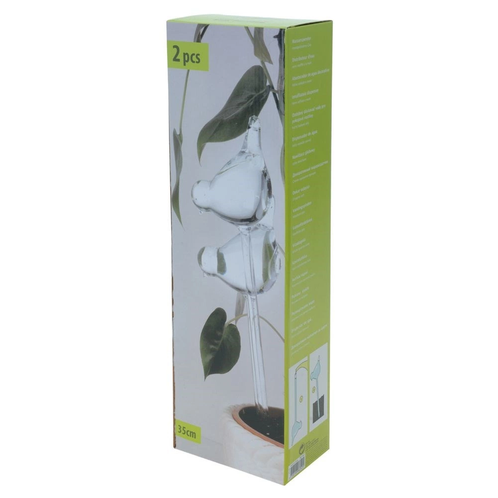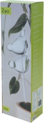 Sættet med to dekorative vandingskugler er ideelt til alle stue- og altanplanter. Hver kugle rummer ca. 200 ml vand og holder takket være gradvis frigivelse af fugt substratet optimalt hydreret i op til 2 uger (afhængigt af plantetype og forhold). Nemt at bruge – fyld med vand og stik i jorden.