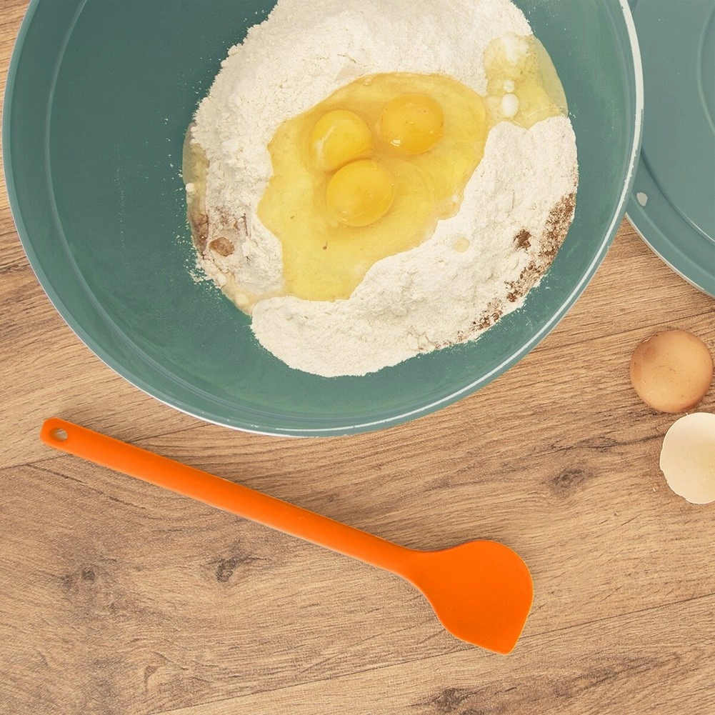 Denne orange silikonespatel er en pålidelig hjælper til daglig madlavning og bagning. Takket være temperaturbestandigheden fra -40 °C til 220 °C klarer den nemt omrøring på panden og arbejde med varme retter, samtidig med at den ikke ridser teflon-, keramik- eller andre nonstick-overflader.