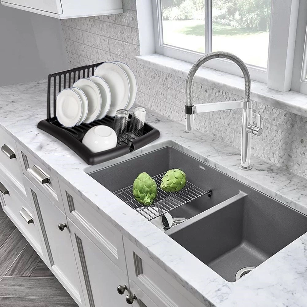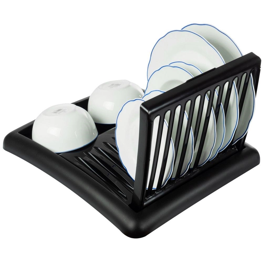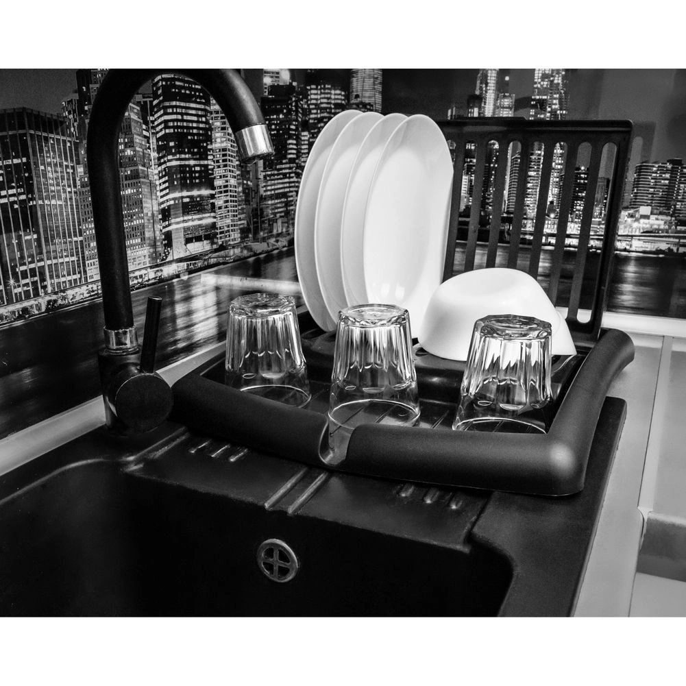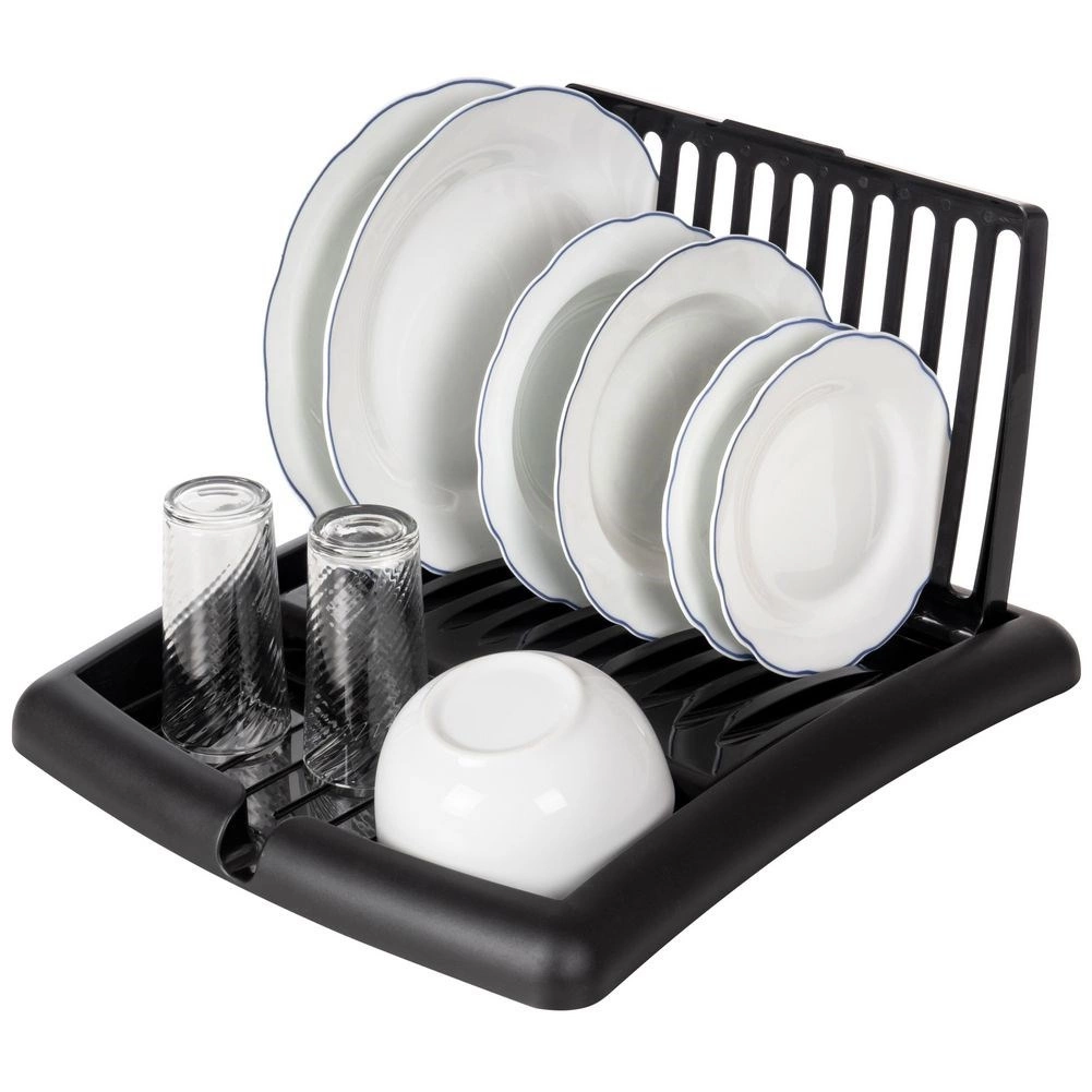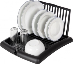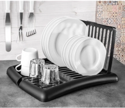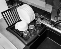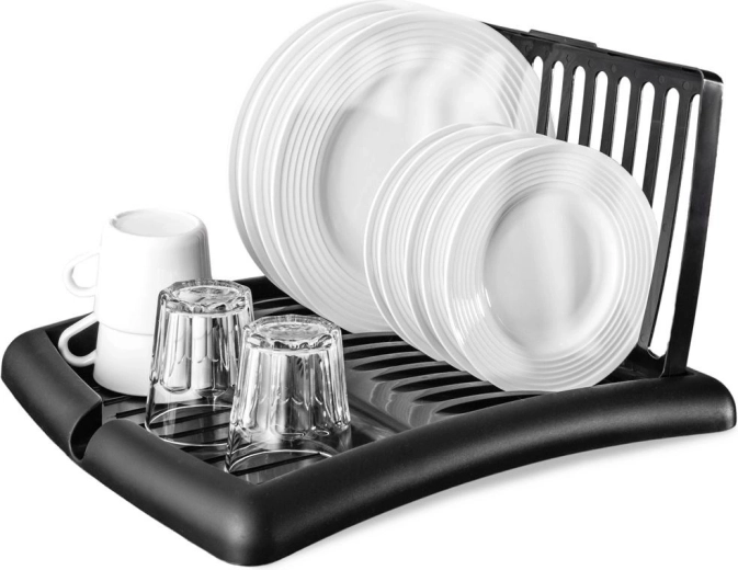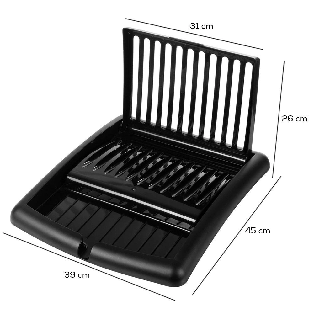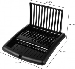 Det moderne sorte design passer til både moderne og klassiske interiører. Konstruktionen i plast af høj kvalitet er let, robust og uden risiko for korrosion. Når det er sammenklappet, fylder stativet minimalt – ideelt til mindre køkkener og hjem med begrænset plads.