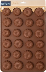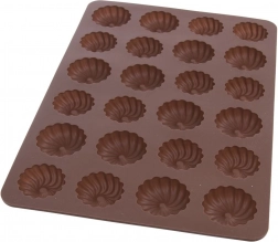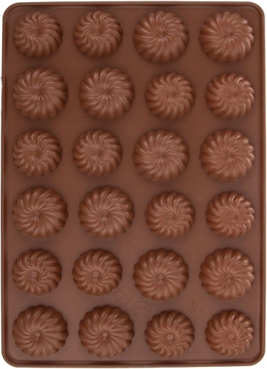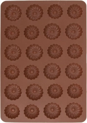 Oplev nem bagning med den brune silikoneform Sillinie. Takket være 24 fordybninger i blomsterform kan du tilberede småkager, praliner og chokolader med en lille fordybning ideel til marmelade eller creme. Formen er et let og fleksibelt redskab, der ikke absorberer lugte eller smag og sikrer nem udformning uden behov for at smøre.