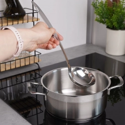Den universelle ske i rustfrit stål er en uundværlig hjælper til daglig madlavning og servering. Volumen på 80 ml gør det muligt at dosere præcise portioner af suppe, sauce, kompot eller gullash. Det lange håndtag holder hænderne i sikker afstand fra varme væsker, mens ophængsøjet gør det nemt at opbevare på en køkkenreling.