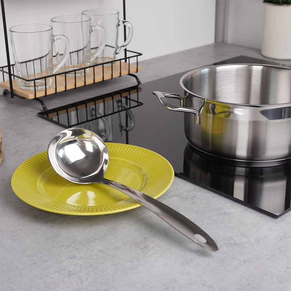 Den dybe, runde skål med et volumen på 80 ml gør det nemt og præcist at øse supper, saucer og gullash uden unødigt dryp.