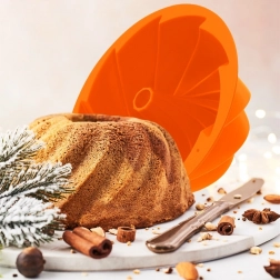 Praktisk silikoneform til bundt‑kage i blomsterform med en diameter på 23,5 cm og en højde på 9 cm. Den er holdbar, non‑stick og fleksibel for nem udtagning af desserter. Velegnet til ovn, mikroovn, køleskab og fryser, tåler temperaturer fra -40 °C til +200 °C og kan vaskes i opvaskemaskine.