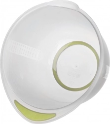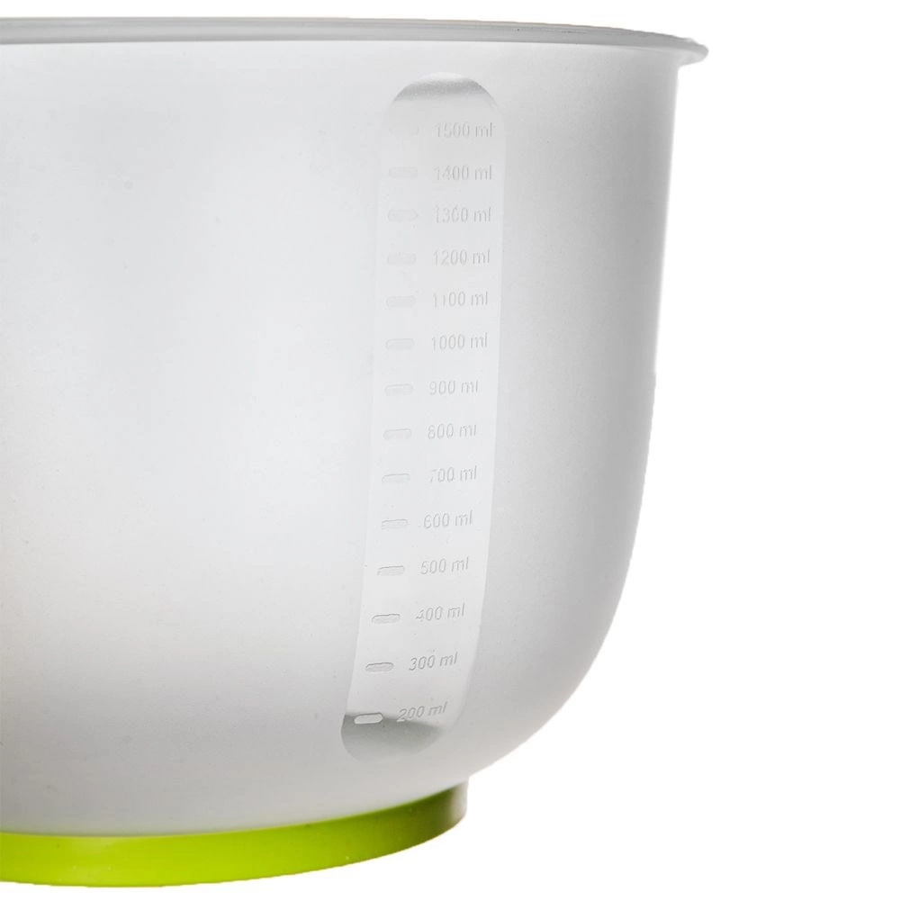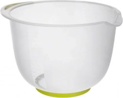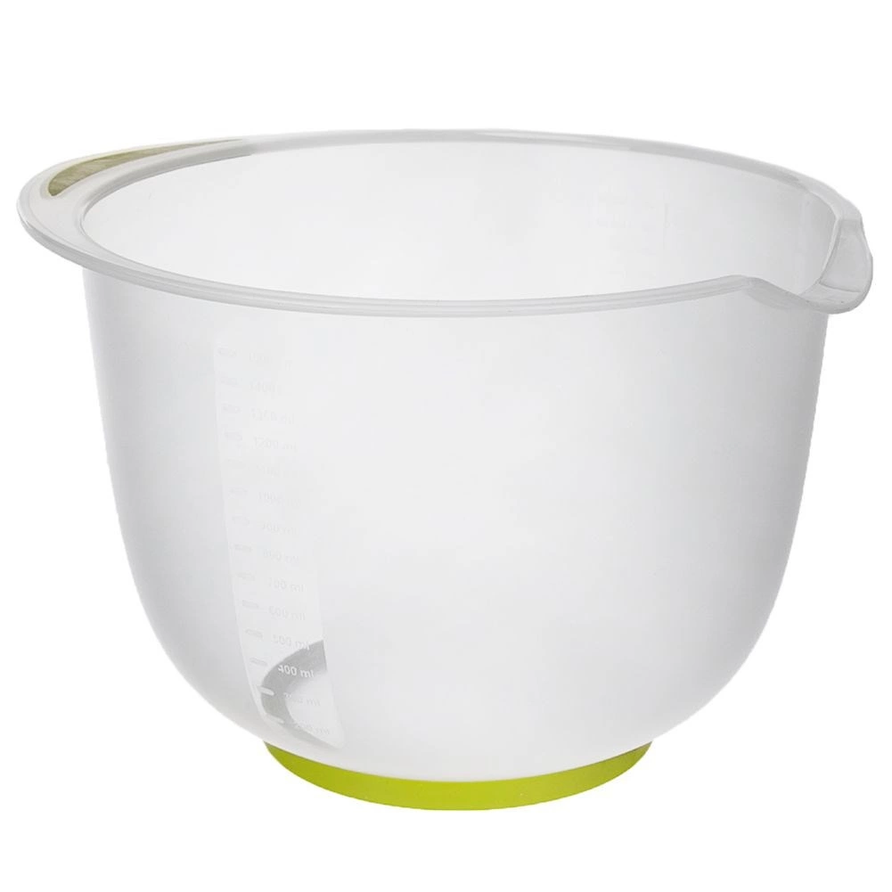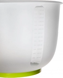Denne lette og samtidig robuste skål med en kapacitet på 1,5 liter er en fremragende hjælper til daglig madlavning og bagning. Den integrerede måleskala gør det muligt at måle ingredienser præcist direkte i skålen, så du ikke behøver ekstra redskaber. De høje sider mindsker sprøjt under intensiv piskning.