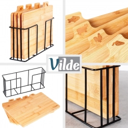 Det robuste sorte metalstativ holder brætterne lodret, sikrer bedre luftcirkulation for hurtig tørring og gør det let at opbevare brætterne overskueligt.