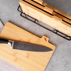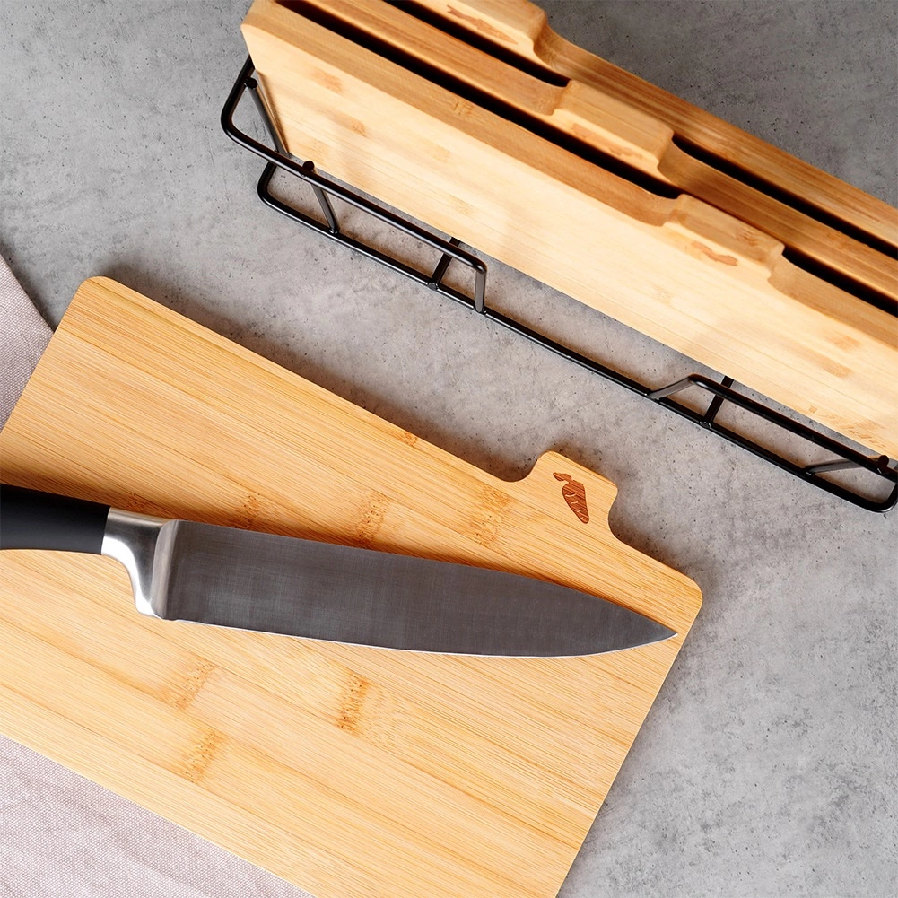 Bambus er et hårdt, formstabilt materiale, der ikke absorberer lugte og tørrer hurtigt. Det er skånsomt mod knivens æg og egner sig til daglig brug.