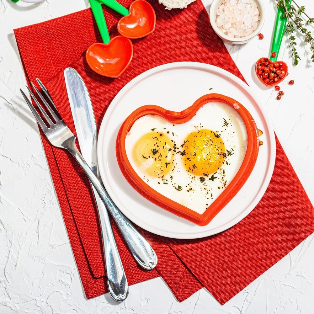 Formen holder faconen på pande og bageplade, så æg, mini-pandekager eller omeletter altid bliver jævne og smukt hjerteformede.
