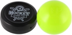 I pakken finder du en plastishockeystav, en puck og en bold for en komplet hockeyoplevelse.