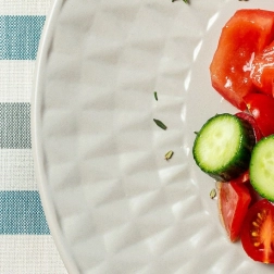 Tallerkenen er praktisk til daglig brug – nem at rengøre, tåler opvaskemaskine og er egnet til mikrobølgeovn. Den klassiske runde form og en behagelig højde på 2 cm sikrer komfort og stabilitet ved servering.