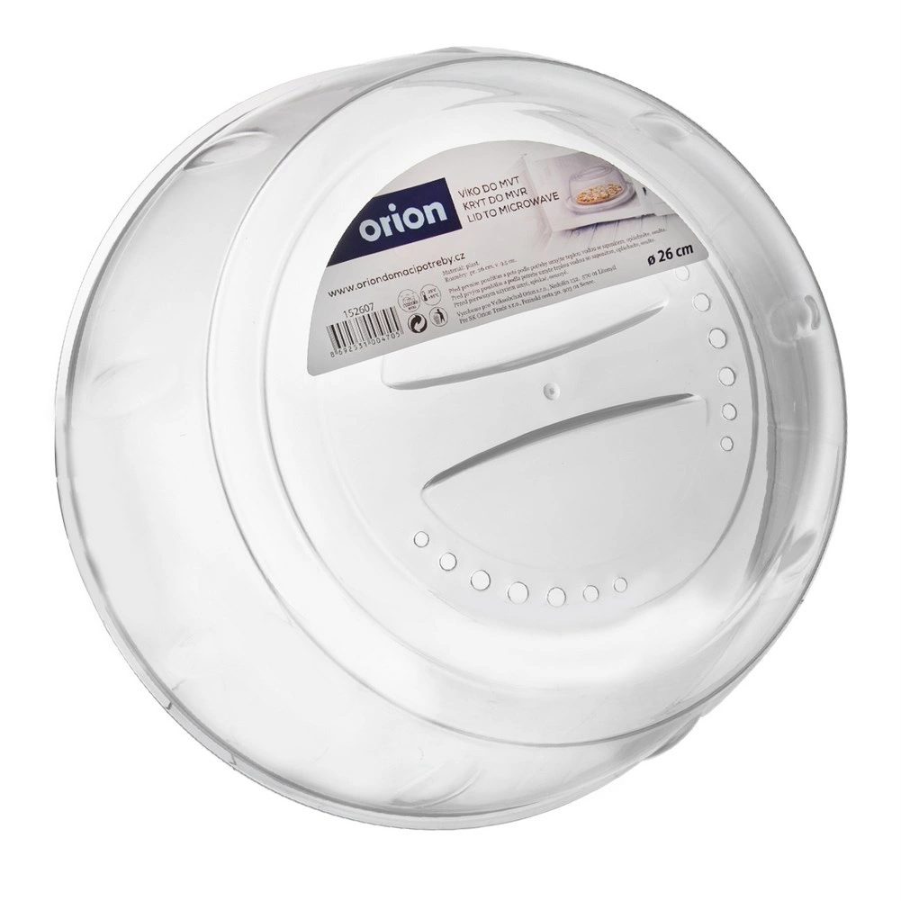 Hold mikrobølgeovnen fri for pletter og snavs. Det gennemsigtige dæksel med praktisk håndtag forhindrer sprøjt, reducerer udtørring af retter og hjælper takket være ventilation med jævn opvarmning. Du kan se maden under hele opvarmningen.