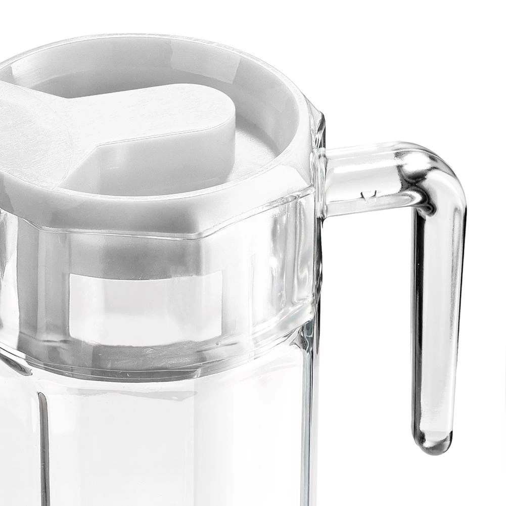 Det praktiske låg af robust plast beskytter drikken mod insekter og støv, mens det ergonomiske håndtag og den formede tud sikrer behagelig og præcis hældning uden dråber. Kanden kan vaskes i opvaskemaskinen og opbevares i køleskabet. Den er beregnet til drikke op til 60 °C; uden låg kan den kortvarigt varmes i mikrobølgeovnen til en temperatur under 60 °C.