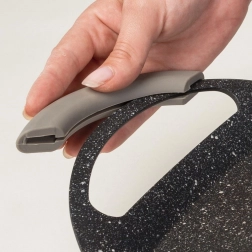 Aftagelige silikoneovertræk for sikkert greb. Velegnet til gas, el, keramik, halogen, induktion, grill og til ovn (uden overtræk).