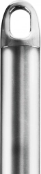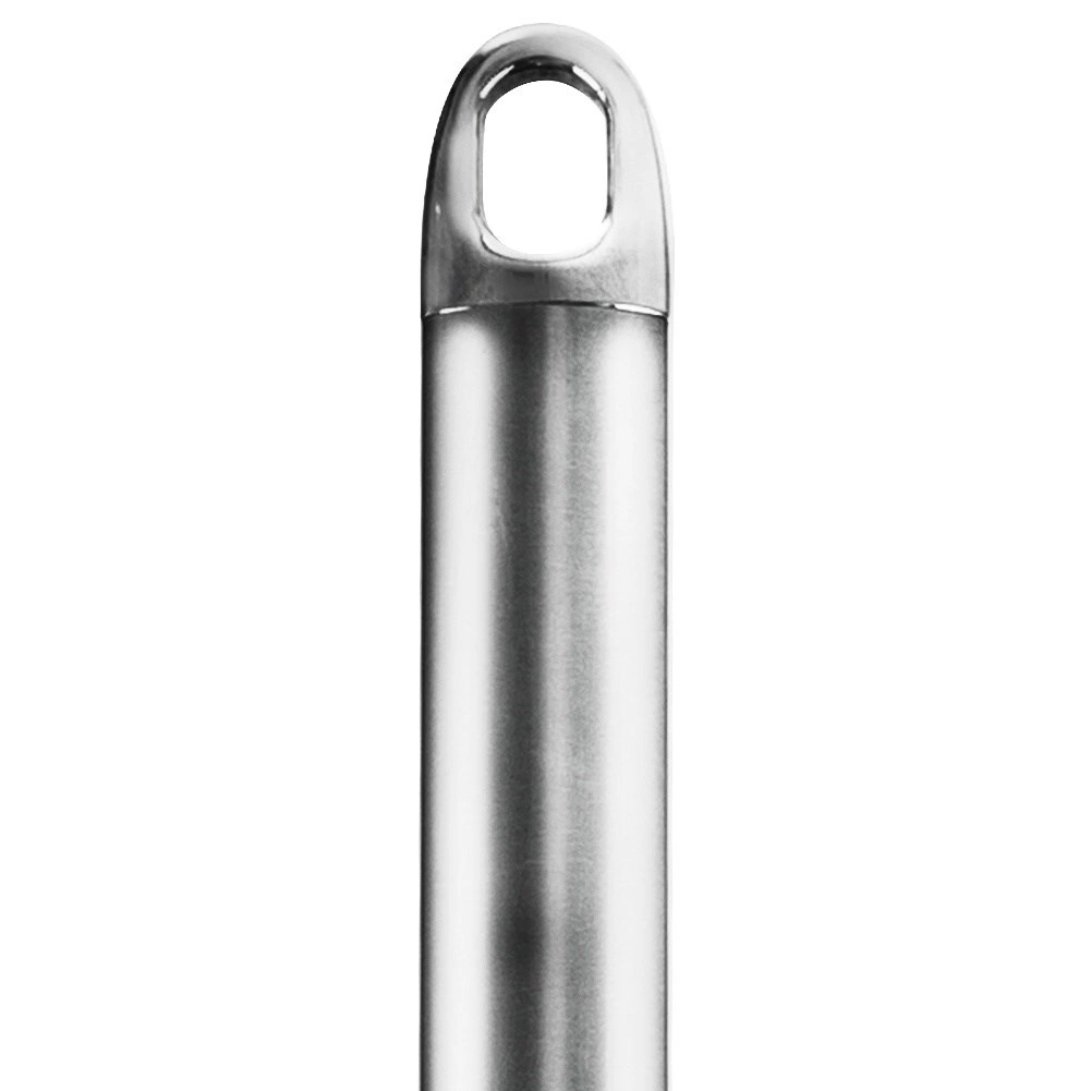 Det ergonomiske stålhåndtag sikrer et fast greb og kan nemt hænges på en skinne eller krog takket være hullet.