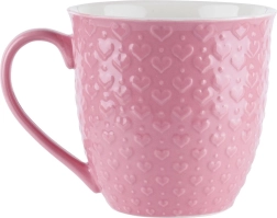 Nyd dine yndlingsvarme drikke med stil. Dette lyserøde keramiske krus på 580 ml imponerer med et elegant hjerterelieff og ligger godt i hånden takket være det brede hank. Perfekt til morgenkaffe, eftermiddagste og andre varme eller kolde drikke.