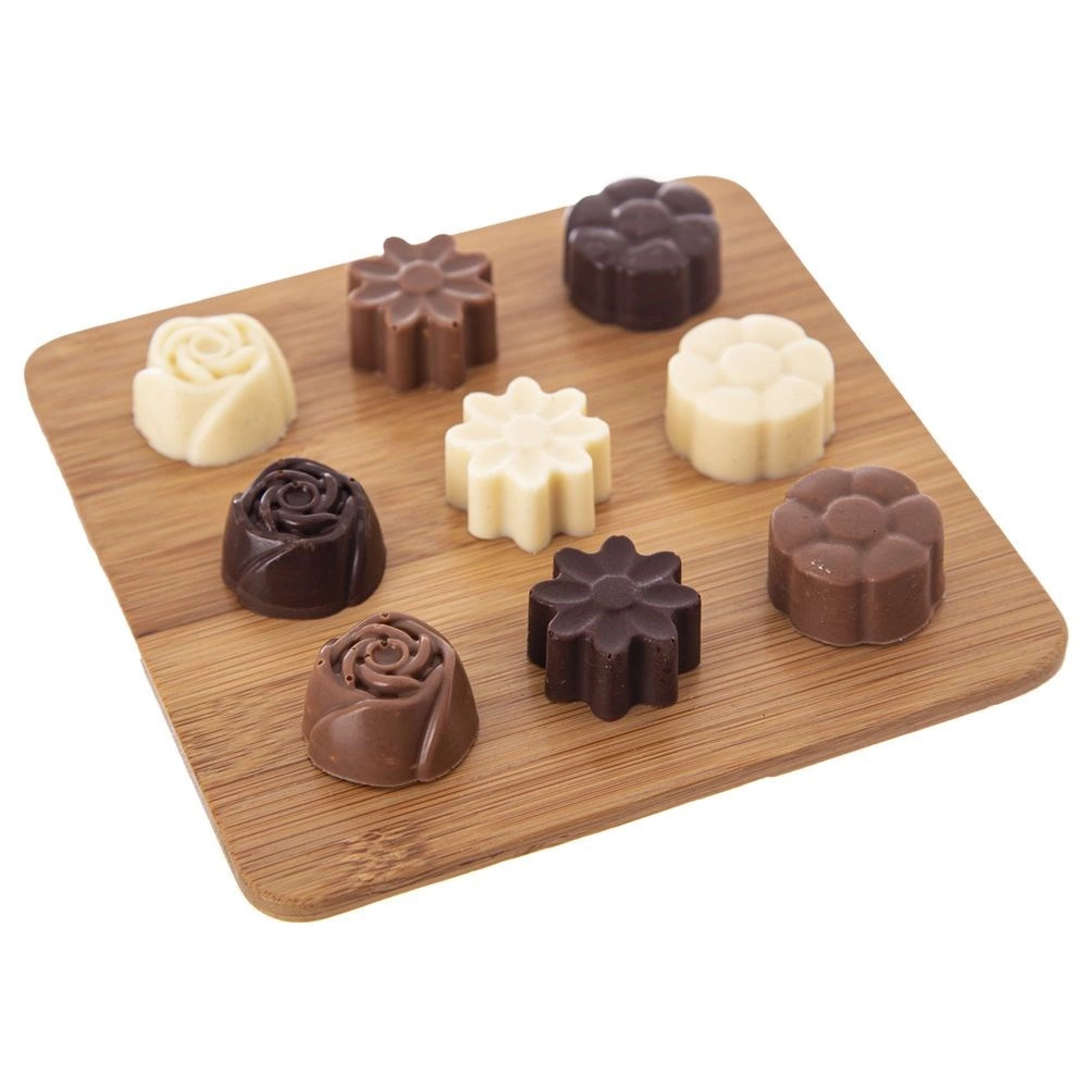 Oplev glæden ved at lave hjemmelavede fyldte chokolader og mini-småkager. Sillinie silikoneformen måler 21 × 20,5 cm og byder på 30 fordybninger med en cirka størrelse på 2,8 × 2,8 cm fordelt på tre elegante blomsterdesign. Takket være silikone af høj kvalitet hænger dejen ikke fast, søtsagerne slipper let, og formen optager hverken lugt eller smag.