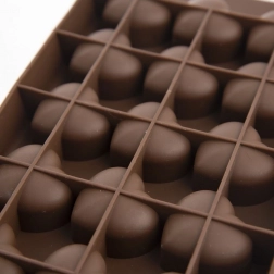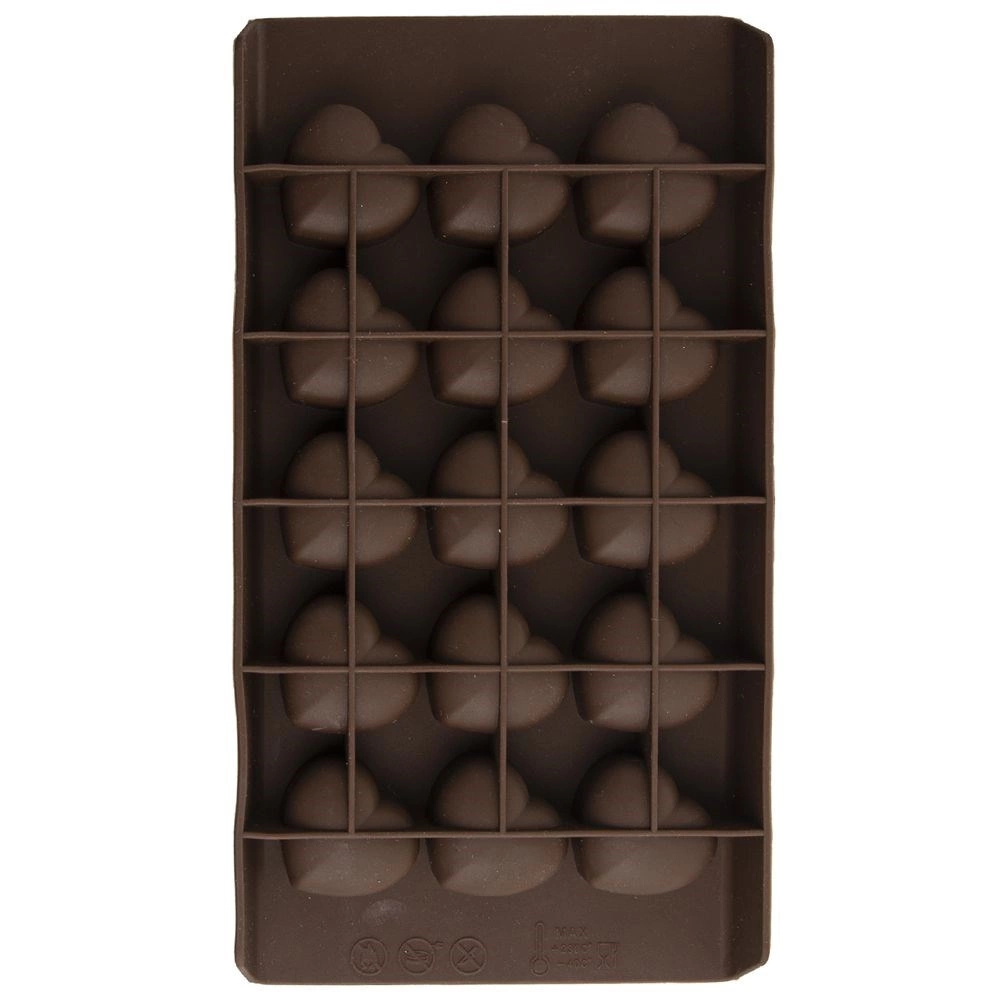 Denne kvalitets silikoneform i brun farve er et fremragende valg til hjemmelavet chokoladepraliner, små småkager eller slik i hjerteform. Takket være den slip-lette overflade er hverken udsmøring eller drysning nødvendig, og de færdige stykker kan nemt vendes ud.