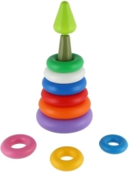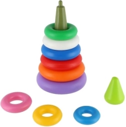 Hver ring har en anden farve, hvilket hjælper med farvegenkendelse og størrelsesdifferentiering. Børn vil blive fascineret af de klare farver og nyde stabling og demontering af pyramiden igen og igen.