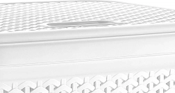 Hold orden på badeværelset med en rummelig vasketøjskurv i moderne rattanlook. Det lukbare låg skjuler indholdet, og det perforerede mønster sikrer luftcirkulation, så hverken fugt eller lugt bliver hængende indeni. Den hvide farve og klassiske form passer ind i enhver indretning.