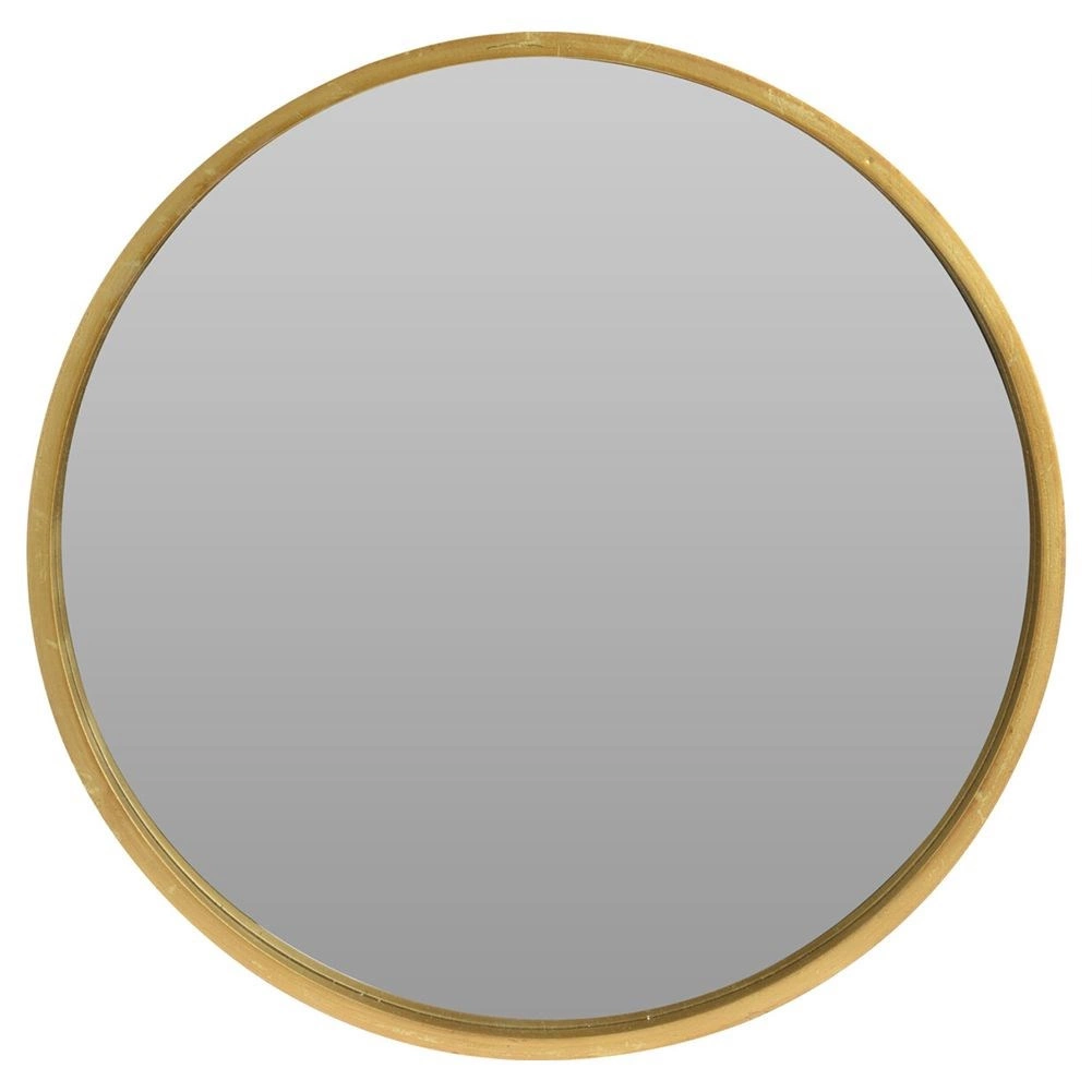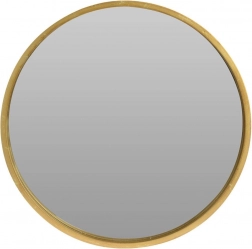 Det stilfulde vægspejl med en diameter på 50 cm er indrammet i en robust træramme i gylden farve. Den minimalistiske form og den luksuriøse nuance gør det til et markant element, der understreger karakteren af dit hjem såvel som kommercielle miljøer.