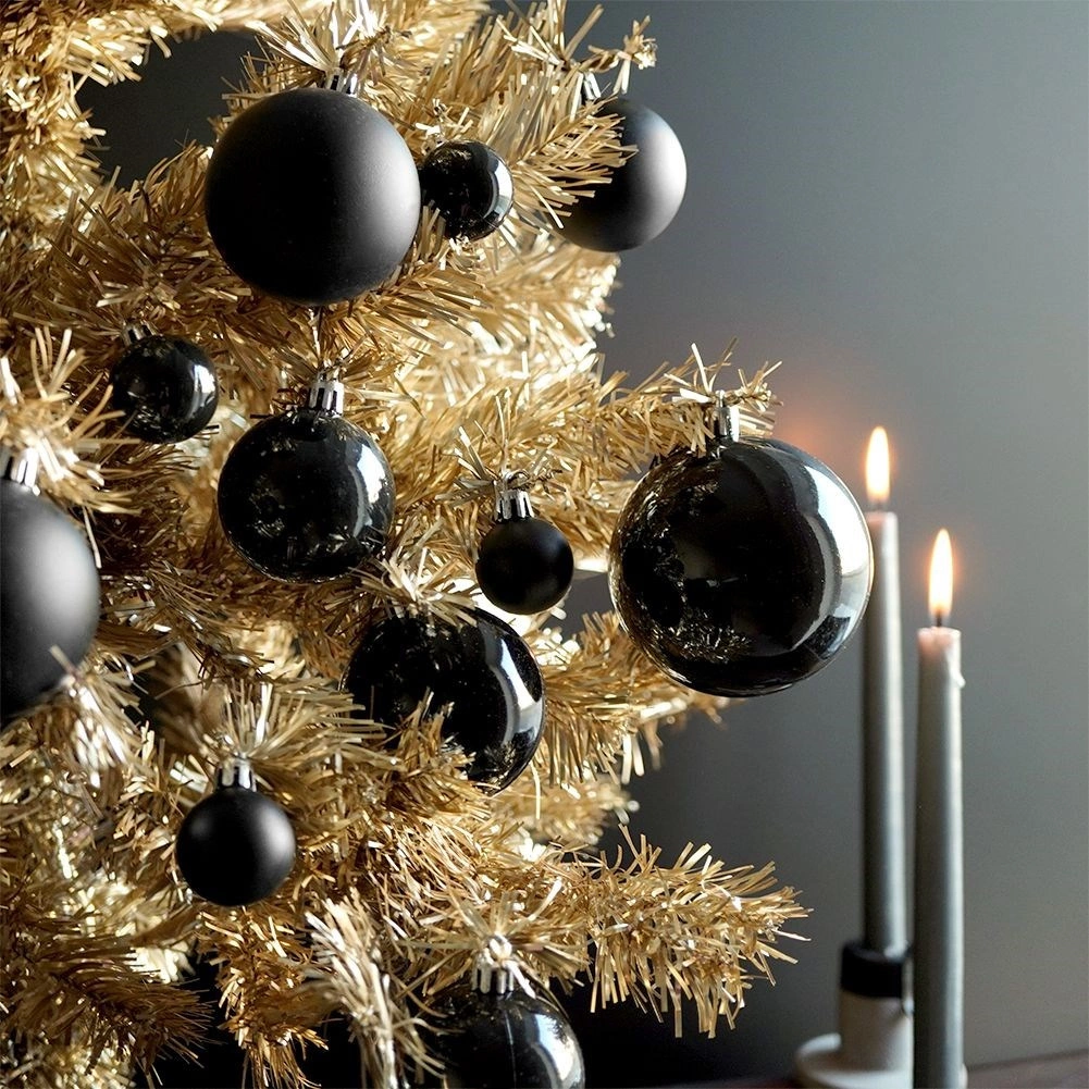 Med dette sæt sorte juleornamenter skaber du nemt en moderne og elegant juleudsmykning. Kombinationen af matte og blanke overflader giver træet og dekorationerne dybde og en kontrasteffekt, der passer perfekt til loft- eller industrial-interiører. Takket være det uknuselige materiale er de et sikkert alternativ til glas.