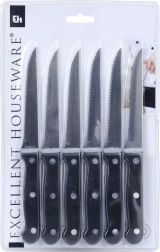Sættet indeholder 6 stk. knive med en samlet længde på 21 cm (blad 11 cm). Det alsidige design er ideelt til steaks, burgere, pizza, kød og pølser. Velegnet til både hjemmekøkkenet og udendørs grill. Fremstillet i overensstemmelse med europæiske standarder for kvalitet og sikkerhed.