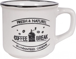 Den kontrasterende sorte kant og grafik med kaffetema giver din borddækning kant og en hyggelig caféatmosfære.