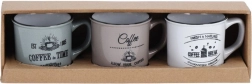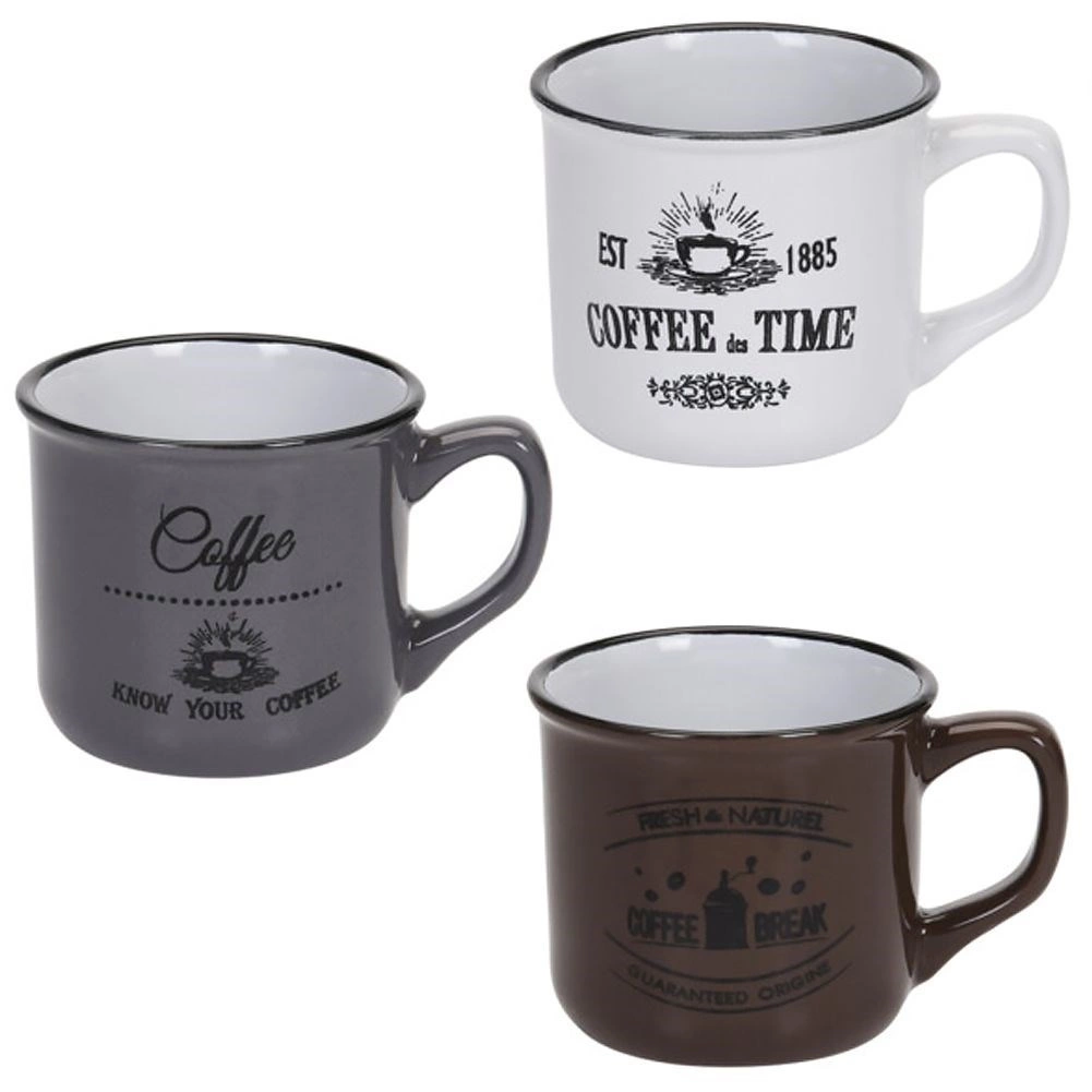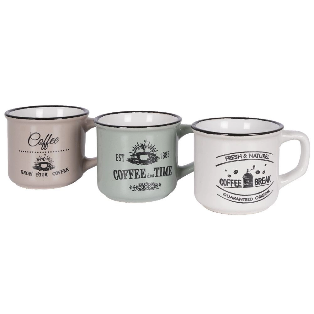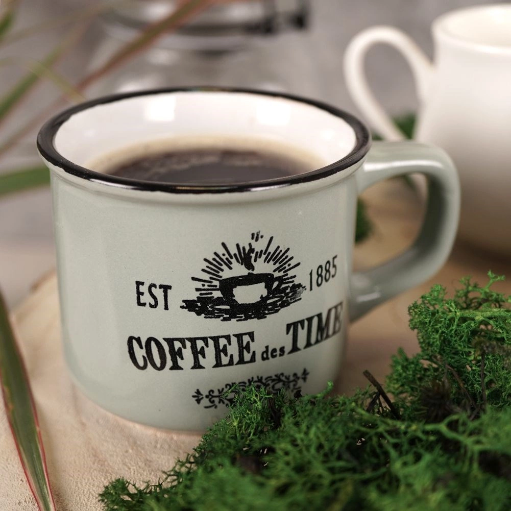 Sættet fås i to farvevarianter med kaffegrafik og kontrasterende sort kant (sendes tilfældigt uden mulighed for at vælge). Krusene tåler opvaskemaskine og mikroovn, så de er lette at vedligeholde og sparer din tid.