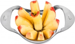 Denne robuste deler af kvalitets rustfrit stål i elegant sølvfinish klarer æbler op til ca. 9 cm i diameter. Med ét tryk laver den lige både og fjerner samtidig kernen – ideel til snacks, salater, desserter og bagning.