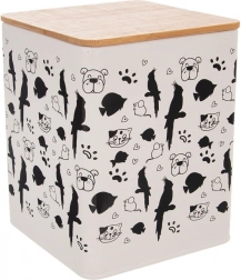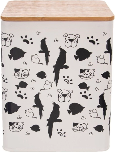 Denne metalbeholder er en praktisk løsning til opbevaring af foder til hunde, katte, fugle eller gnavere. Takket være det kraftigt tætsluttende bambuslåg med silikonepakning forbliver indholdet beskyttet mod fugt og lugte og holder sig friskt længere. Det elegante design i hvid med sort dekoration gør samtidig dit køkken eller viktualierum hyggeligere.