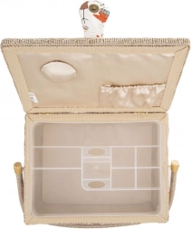 Den gennemsigtige plastindsats med 7 rum holder tråde, nåle og småting adskilt og lige ved hånden. Når den tages ud, opstår et stort rum til større redskaber.