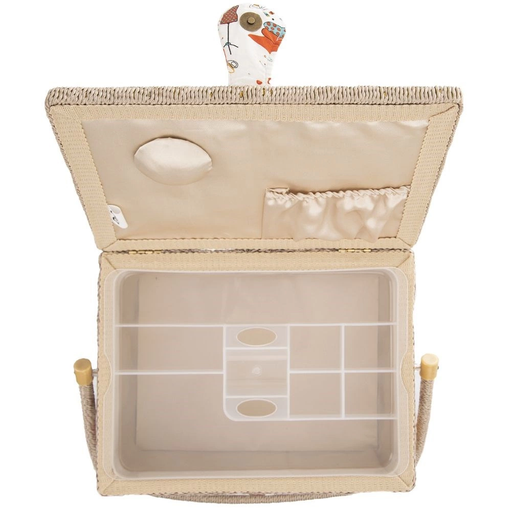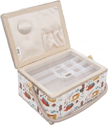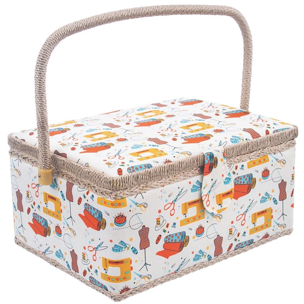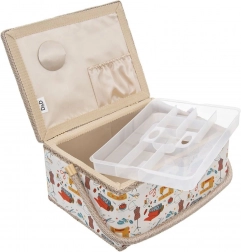 En stilfuld og solidt udført syæske i kurveformat, som holder dine syting altid på plads. Det ydre betræk med farverige skræddermotiver passer nemt ind i syhjørnets indretning. Takket være de kompakte mål er den ideel til både hjemmesyning og til at tage med på kurser og workshops.