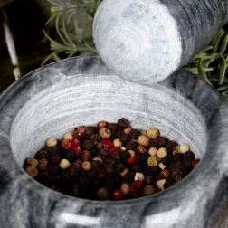 Morteren er lavet af naturlig granit, derfor kan de enkelte stykker variere en smule i struktur og farvetone – hvert stykke er unikt. Takket være enkel vedligeholdelse og muligheden for opvask i maskine bliver den en praktisk hjælper i ethvert køkken.