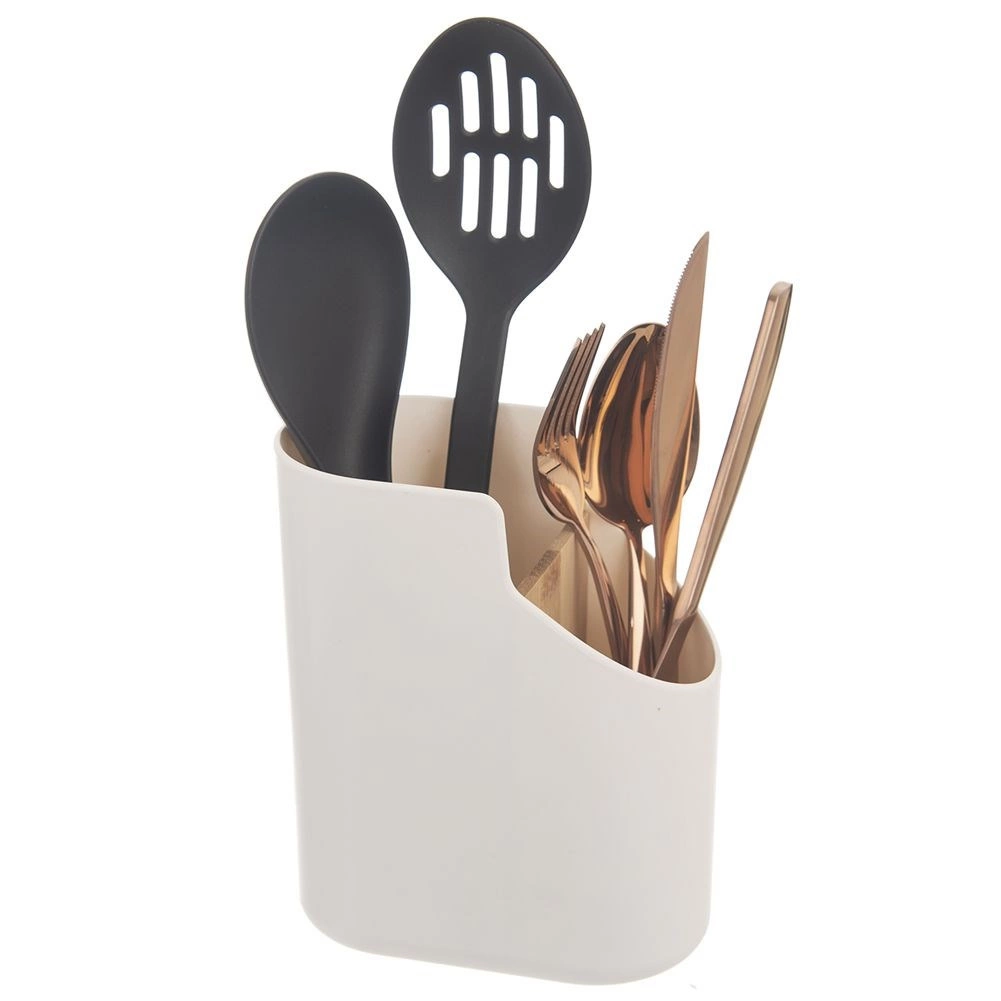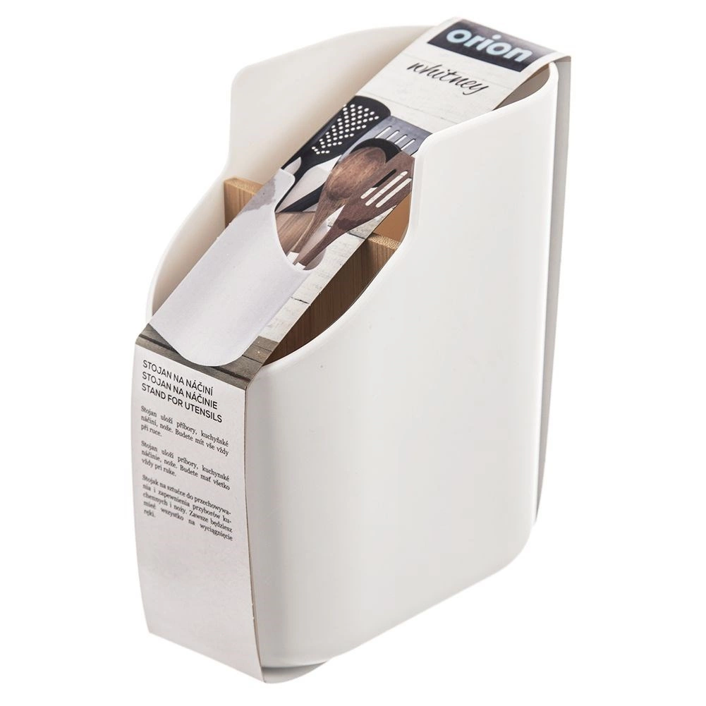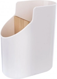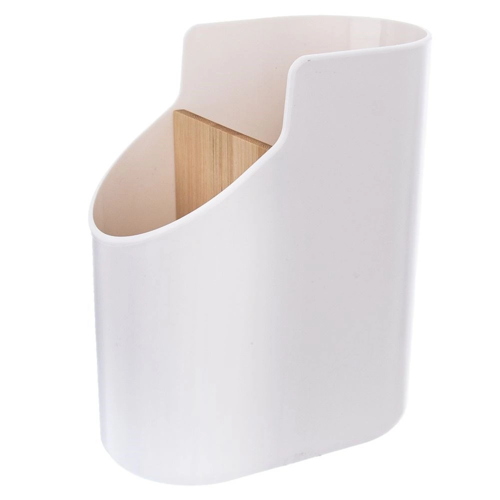 Hold dit køkken rent og organiseret med den elegante WHITELINE-stander. Kombinationen af mat hvid og naturlig bambus giver et moderne udtryk, der passer ind i enhver indretning. To separate sektioner gør det muligt at sortere bestik og køkkenredskaber, mens den perforerede bund hjælper vandet med at løbe af efter opvask.