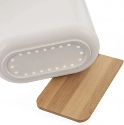 Den udtagelige bambusadskiller giver friheden til at opdele pladsen eller udnytte hele rummet. Standeren er let og holdbar og takket være de glatte overflader nem at vedligeholde – det er nok at tørre af med en fugtig klud eller skylle under vand. Den silikone tætnings-/skridsikre måtte i bunden sikrer stabilitet på bordpladen.