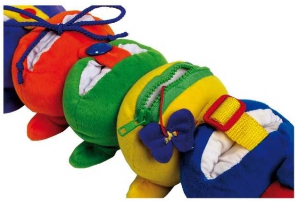 Den søde og bløde tekstil-milleben fra Small Foot hjælper børn med at udvikle finmotorik og koncentration. Den tilbyder 6 almindelige typer lukninger – fra snørebånd og lynlås til velcro – så børn på legende vis træner praktiske færdigheder. De glade farver og det behagelige plysmateriale gør den til det ideelle legetøj for de mindste.