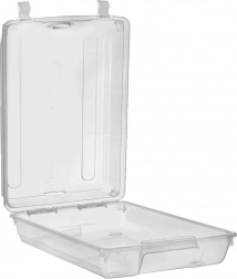 Vipbelåget med to robuste klips beskytter indholdet mod støv og fugt, mens den integrerede ventilationsåbning hjælper luftcirkulationen.